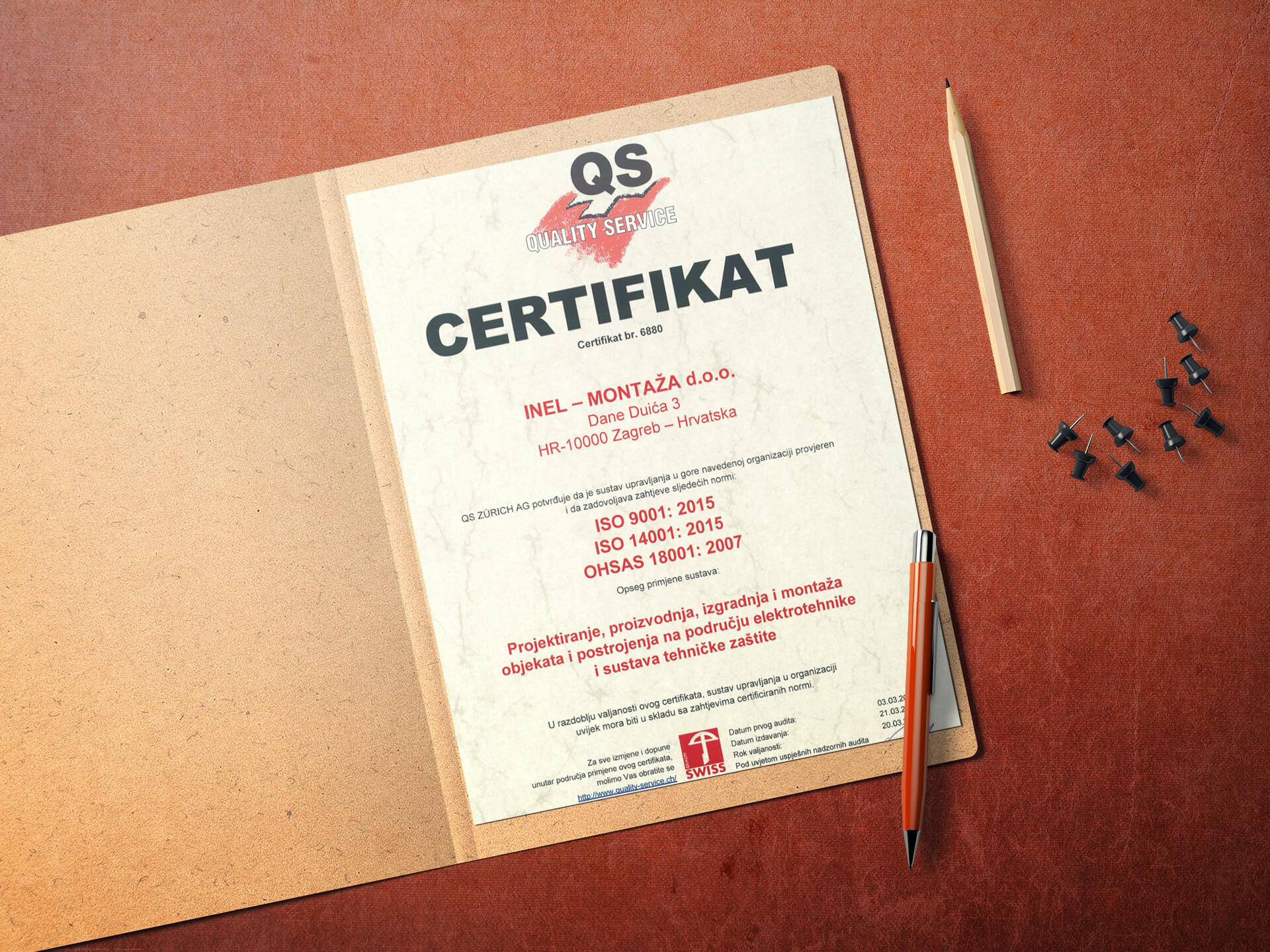 Dedicated to quality, INEL – MONTAŽA has certified and implemented an integrated management system.